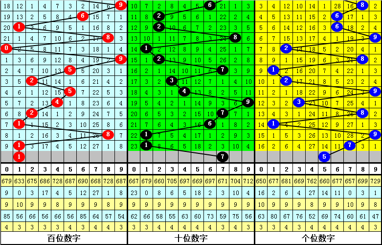 百位号码奇偶比为2:5,奇数走势较冷,本期看好奇数出现;大小比为5:2,小号表现较冷,本期看好开出小号。