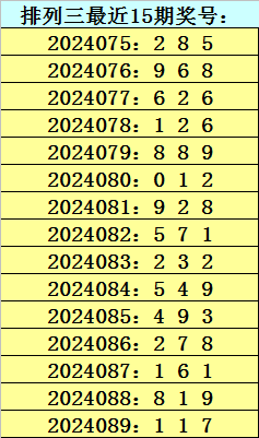一、体彩排列三第2024089期奖号为117,该号码历史上直选出现了8次,组选出现了19次。