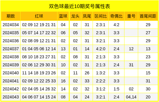 开奖回顾:第2024043期双色球奖号为04、06、07、14、15、24+08。区间比:3:2:1,奇偶比:2:4,重号开出04,14,首尾间距:20。