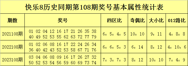 万妙仙快乐8历史同期第108期奖号基本属性分析