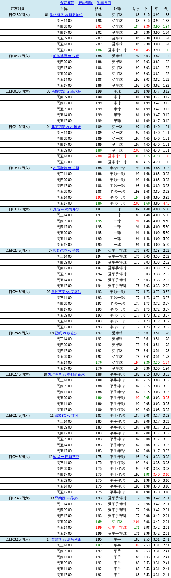 中国足球彩票胜负彩24075期澳盘最新赔率(17:00)
