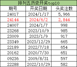 北京时间2024年6月2日,体彩排列五第24144期开奖,当期开奖号码为“1 4 7 8 6。原本是平平无奇的一组号码,却没想到引发彩市震动!因为本期排列五爆出了高达2844注头奖,奖池再度被清空的同时,也触发了排列五的《风控办法》,一等奖的奖金由固定的单注10万元降至单注15905元!