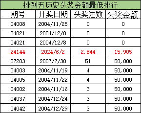 自2004年上市,排列五起初头奖的金额仅有5万元,2005年迎来升级,头奖升至10万元。而在排列五历史开奖的20年间,头奖仅有3次空开,均出自2004年。在开出头奖的情况下,昨晚的1.5万元头奖为历史最低!近年来,大量彩民将目光放至“小彩种”,如快乐8的“选5”、“选7”玩法,排列5游戏等,并进行高额倍投,导致奖池短时间内缩水严重。
