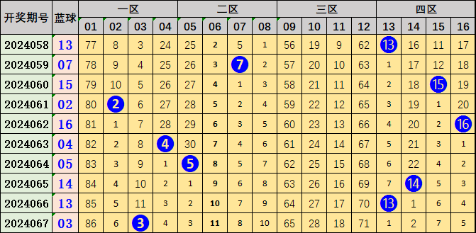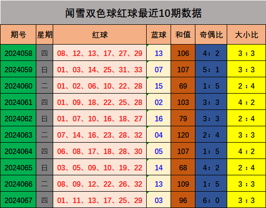 开奖回顾:双色球第2024067期开出01 11 13 17 25 29+03,和值96,奇偶比6:0,大小比3:3。