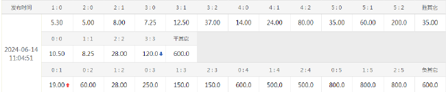 本场竞彩官方开出1.24(意大利胜) 4.45(平局) 9.20(阿尔巴胜)的胜平负赔率,与德国对阵苏格兰的数据相差无几。比分赔率方面,意大利2-0取胜为1赔5,但1-0小胜也仅5.3,而2-1和1-1的赔率分别为8和8.25,与德国数据相比,对于意大利小胜甚至是平局的结果略显保守,似乎蕴含一丝冷意。两队历史上4次交锋意大利保持全胜,作为欧洲传统强队的底蕴显露无疑,但近年来阿尔巴尼亚的进步也是有目共睹,总体来看还是倾向意大利赢球,但至多1球小胜。