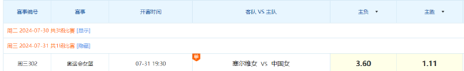 竞彩网开出的胜负数据中,中国女篮给出1.11的低赔,让分玩法则给出中国女篮让塞尔维亚女篮8.5分,似乎给足其争夺出线关键战的战意体现。综合来看,本场比赛女篮姑娘们有机会击败强敌。