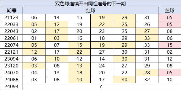 小编回查了最近10次双色球连续开出同一组连号的下一期奖号,总结出几个特点可供彩民选号时参考: