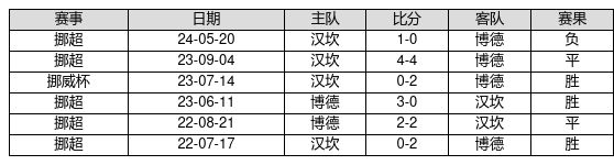 博德 VS 汉坎两队近10年的交战次数为6场,博德3胜2平1负,赢球概率为50.0%,平局概率为33.3%,输球概率为16.7%。
