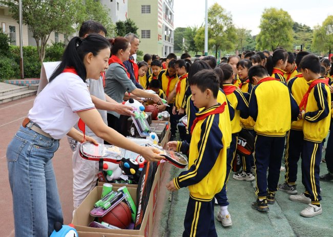 2022——向梅州太和小学、东溪小学资助了1453件体育器材