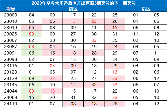 在大乐透开奖中,后区一直有着至关重要的作用,因此后区的形态走势也深受彩民关注。大乐透后区开出直落3期奖号的情况并不算多见,经小编统计,2023年至今一共也只开出过15次,其中今年更是仅现身3次。根据这15次后区开出直落3期奖号的下一期奖号,小编总结出以下几个特点,希望能为彩民选号时提供参考: