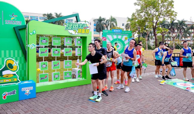 游戏区内,“绿色生活 顶呱刮”主题旱地冰壶游戏更是备受青睐。刚跑完10公里的李先生是一名冰壶运动爱好者,他兴奋地介绍道:“旱地冰壶是冬奥会冰壶项目的普及版,体彩这次活动设置的这个游戏既锻炼手脑身心,又能让更多人了解冰壶项目,真是太棒了。”