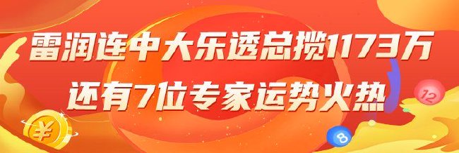 12月11日晚,大乐透第24144期开奖,新浪数字彩专家再传捷报,专家雷润预测中大乐透一等1120万,值得一提的是,就在大乐透第24143期中,雷润还预测中二等奖53万,连续2期大乐透预测中奖共揽1173万!