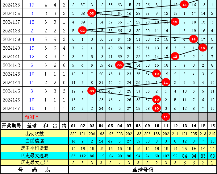 蓝球分析:在第148期历史同期开奖中,蓝球号码奇偶比为9:9,最近5年同期奇偶走势为:奇、偶、偶、偶、偶,今年同期看好开出奇数蓝球,参考号码11。