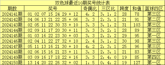 南华天第2024151期双色球区间号码个数统计分析:(红球:01-11为一区,12-22为二区,23-33为三区;蓝球:01-04为一区,05-08为二区,09-12为三区,13-16为四区)