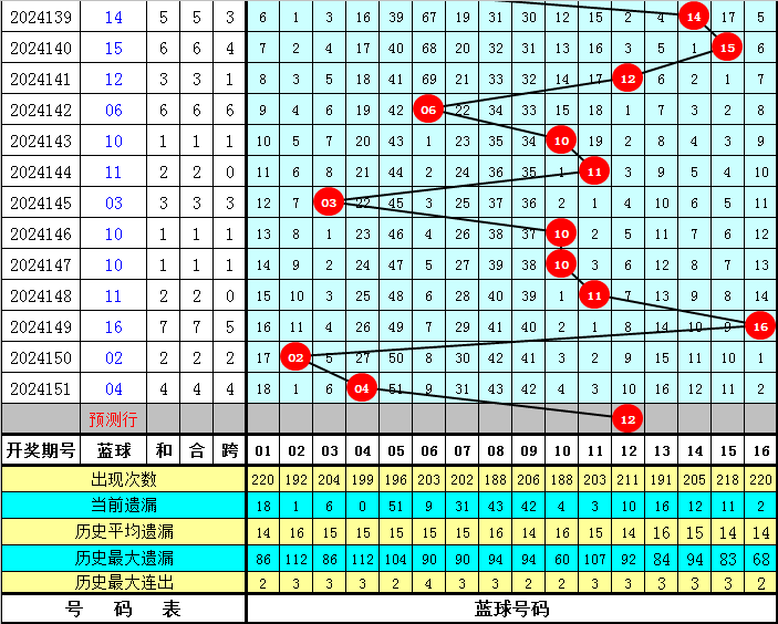 双色球第2025001五码蓝球推荐:01 03 04 12 16