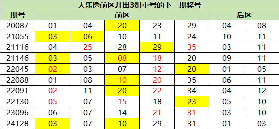 本周六大乐透将进行龙年的最后一期开奖,而随着上期3重号现身,该形态的热度能否延续呢?为此小编特意整理了最近10次大乐透前区3重号后的下期奖号,整理规律为彩民选号提供思路。