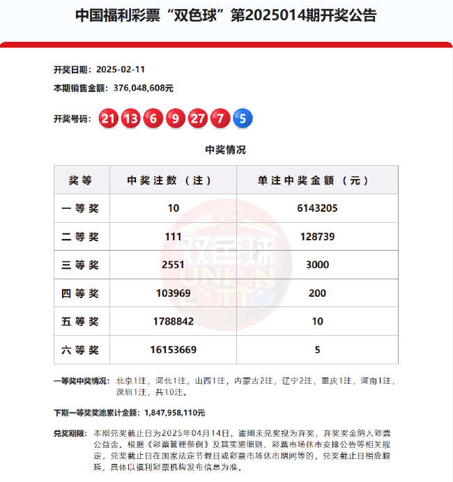 北京时间2025年2月11日,福彩双色球第25014期开奖,以下是详细开奖流程: