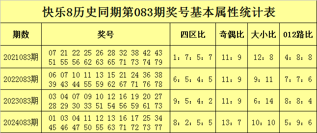 万妙仙快乐8历史同期第083期奖号基本属性分析