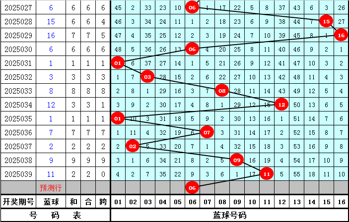 蓝球推荐:小 号蓝球最近走势明显活跃,本期看好小 号蓝球再次出现,关注号码06。