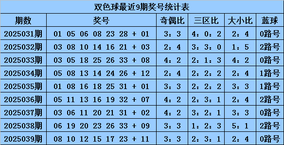 双色球第2025040期开奖奖号为:08 10 12 15 17 23 + 11,红球奇偶比为3:3,大小比为2:4,三区比为2:3:1。