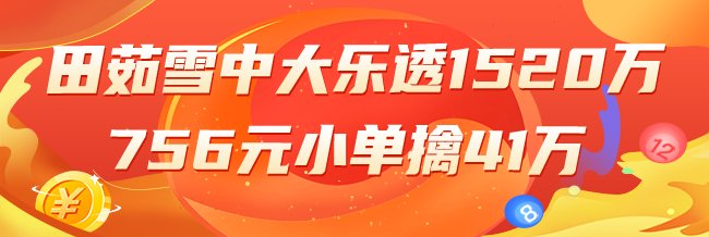 田茹雪大乐透:上期中大乐透派奖头奖豪揽1520万!其中756元小单还擒中2等41万!近期状态十分火热!前期预测数字彩已累擒2595万!本期继续信心出发,冲击派奖第三期大奖![查看专家推荐]