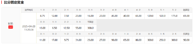 竞彩官方为本场比赛开出了2.05(阿森纳胜)3.25(平局)3.00(大巴黎胜)的赔率组合,坐镇主场的阿森纳稍被看好。比分方面,两队1-1战平的赔率最低,为1赔6.50;其次是阿森纳2-1取胜的1赔7.50;巴黎方面,赢球最低赔为2-1的1赔9.75。由此可见,双方的实力就在伯仲之间。综合来看,考虑到阿森纳既有主场优势,又拥有交战中的心理优势,本场有望延续面对巴黎的不败纪录,或将1-1战平对手。(奇乐)