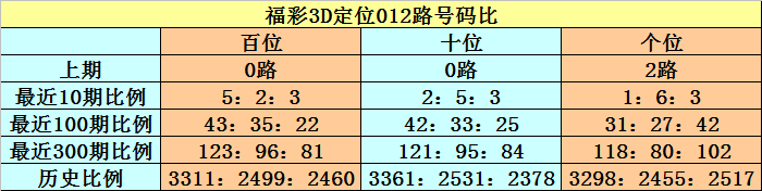 百位推荐:近10期出现5个0路号、2个1路号、3个2路号,0路号大热,1路号走势低迷。本期注意0路号,关注号码0、6。