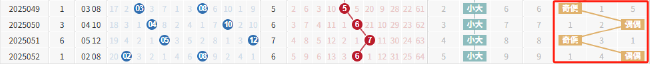 后区方面,近期后区奇偶形态呈现出交替走势,"奇偶"和"偶偶"形态轮流开出。而上期刚开出02 08的"偶偶"组合,那么本期是否会如期开出"奇偶"组合呢,让我们拭目以待!