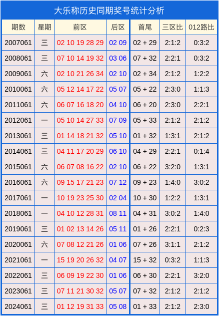 大乐透历史同期奖号统计图