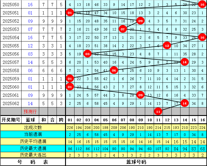 蓝球:上期蓝球号码为14,开出偶数、大号,蓝球最近7期大小比为3:4,本期注意大号蓝球出现,蓝球关注11。