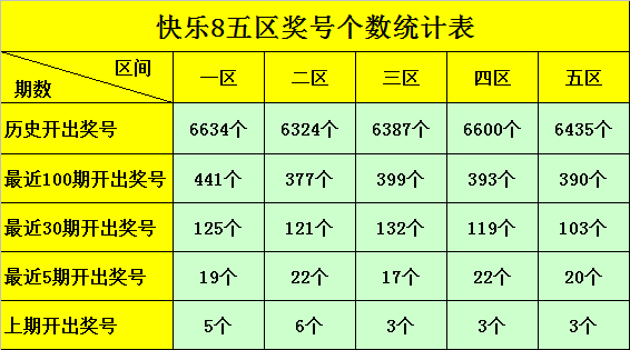 最近5期该区开出19个奖号,表现最热的号码为:01、04、09、10、15,开出了2次,表现最冷的号码为:08、14,出现0次;