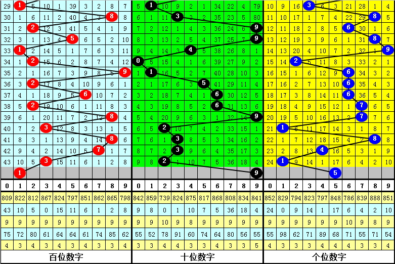 百位杀号:上期百位开出号码3,历史上百位号码3已开出867次了,最近100次百位号码3出现之后,其下期各号码频次分别为:号码5、1出现14次,4出现13次,3出现11次,9出现10次,0出现9次,6、7出现8次,2出现7次,8出现6次。