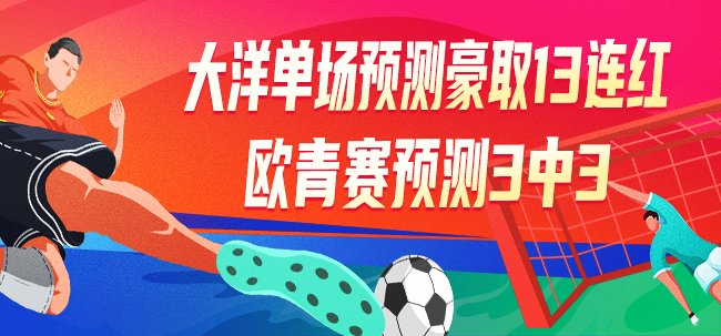 大洋:超稳!连续擒焦点战单场,豪取一波13连红!欧青赛U21预测3中3,看最新方案冲个人最长连红纪录!