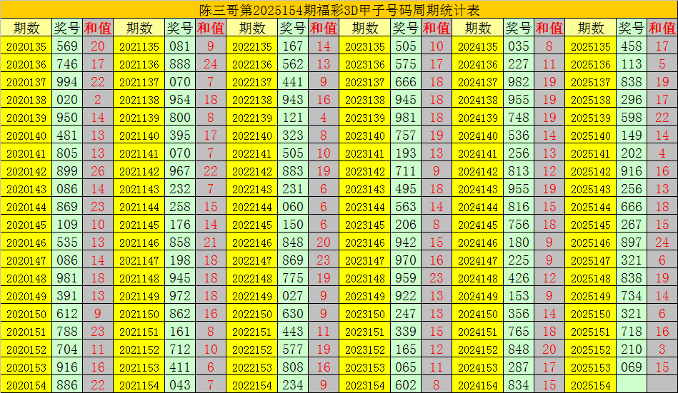 第2020年-第2024年的第134期奖号分别为:884、456、953、463、640,第2020年-2024年的第154期奖号分别为:886、043、234、602、834。其中: