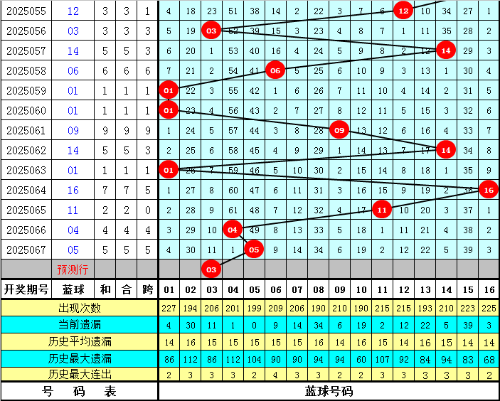 上期开奖:福彩双色球第2025067奖号开出:01 05 10 17 20 22 + 05,红球号码和值为75,首尾间距为21,无连号。