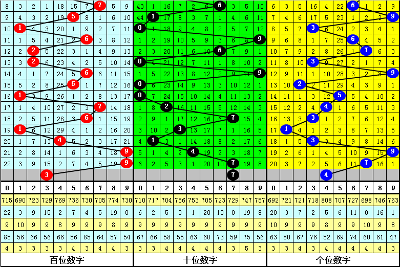 二、在最近22期开奖中,奖号:7、1、2、3,开出期数最多,本期注意这四码中落号,关注号码3;遗漏期数最多的三码奖号为:8、0、5,当期开奖一般不会全部出现冷码。