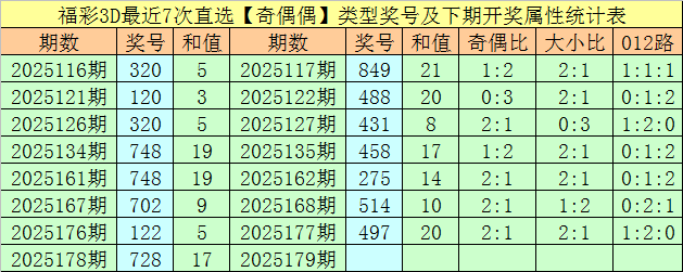 万人王福彩3D第2025179期号码参考: