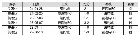 夏洛特FC VS 纽约城两队近10年的交战次数为6场,夏洛特FC4胜1平1负,赢球概率为66.7%,平局概率为16.7%,输球概率为16.7%。
