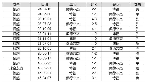 博德 VS 桑德菲杰两队近10年的交战次数为15场,博德9胜3平3负,赢球概率为60.0%,平局概率为20.0%,输球概率为20.0%。