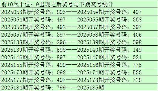 上期回顾:福利彩票3D第2025184期开奖结果:奖号为799,奖号和值为:25,奖号跨度为:2,奇偶形态为:奇奇奇,大小形态为:大大大。