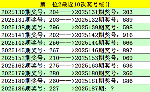 上期回顾:福彩3D第2025186期奖号227。和值11,跨度5,大小比1:2,奇偶比1:2。