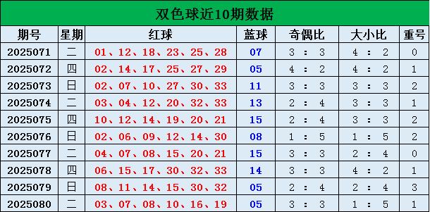 双色球上期开奖号码:03 07 08 10 16 19+05。红球大小比为1:5,奇偶比为3:3,开出1枚重号08。