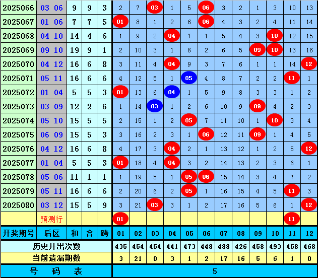后区第二位推荐:在连续5期开奖中分别出号:12、04、06、11、12,均值为9.0,其中奇数奖号表现较冷,本期适当关注回补,参考奇数号码11。