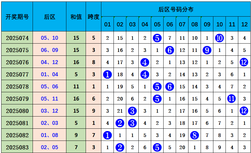 大乐透后区综合分析: