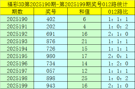 福彩3D第2025200期012路分析