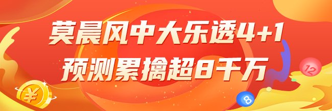 莫晨风大乐透:总榜第二!上期预测中4+1,前期预测中大乐透双色球等8417万!
