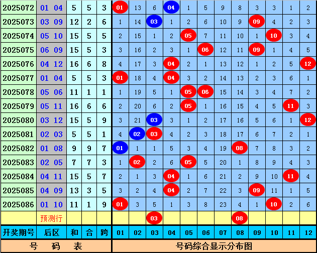 马哥第2025087期大乐透后区五码参考:03 07 08 10 12