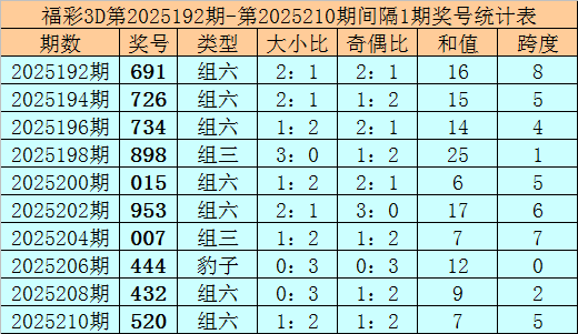 其中大小比3:0,奇偶比2:1,和值24,跨度2。
