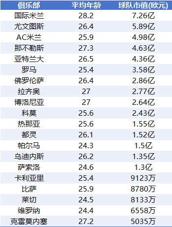 北京时间8月24日凌晨,新赛季意甲联赛即将开战。转会市场即时更新了意甲联赛的身价排行。新赛季意甲共20支球队,全联赛身价超52.5亿欧元,其中国际米兰身价7.2亿欧元排名榜首,领先第二名尤文图斯1.37亿。
