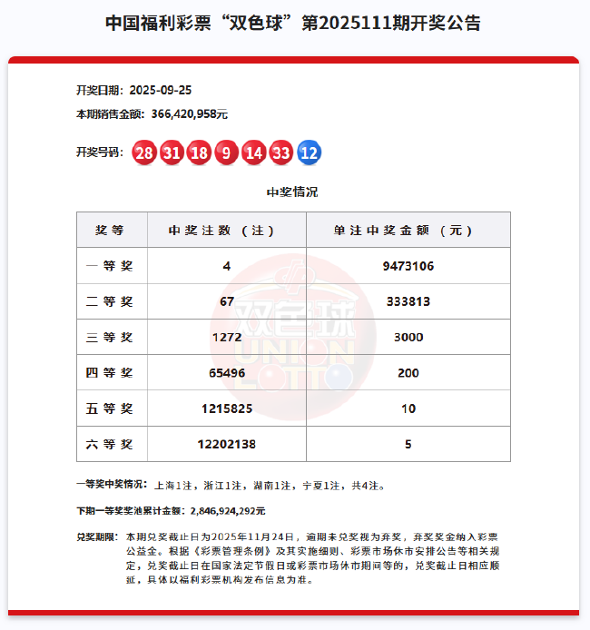 北京时间2025年9月25日,福彩双色球第25111期开奖,以下是详细开奖流程: